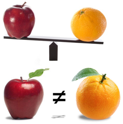 A comparison of apples and oranges occurs when two items or groups of items are compared that cannot be practically compared.